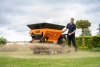 napędzany hydraulicznie i uruchamiany elektrycznie za pomocą przełącznika na mechanizmie kierowniczym. Szybkość rozsiewu można regulować za pomocą prędkości taśmy przenośnika i regulowanego otworu pod prowadnicą szyny dozującej. Rozrzucany materiał spada na dwie szybko obracające się, napędzane hydraulicznie tarcze rozsiewające o średnicy 38 cm, rozprowadzające równomiernie materiał na szerokość do 5 metrów.